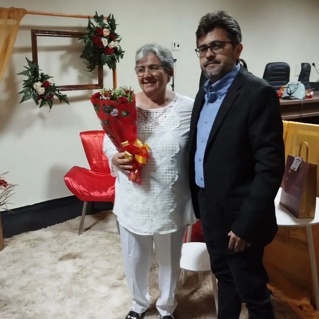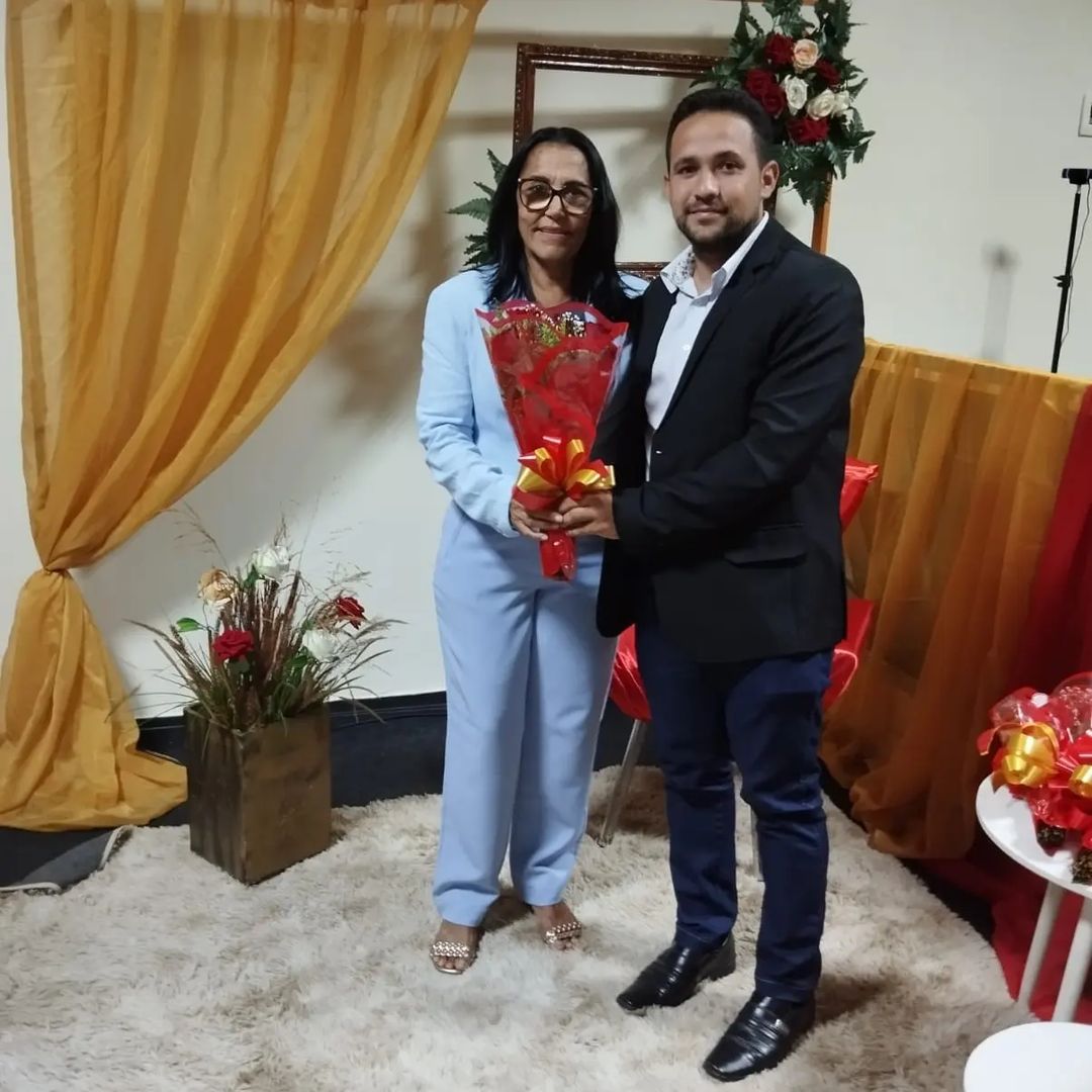 Vereador Godeiro Carlos Entregando buquê a Vereadora Aldi